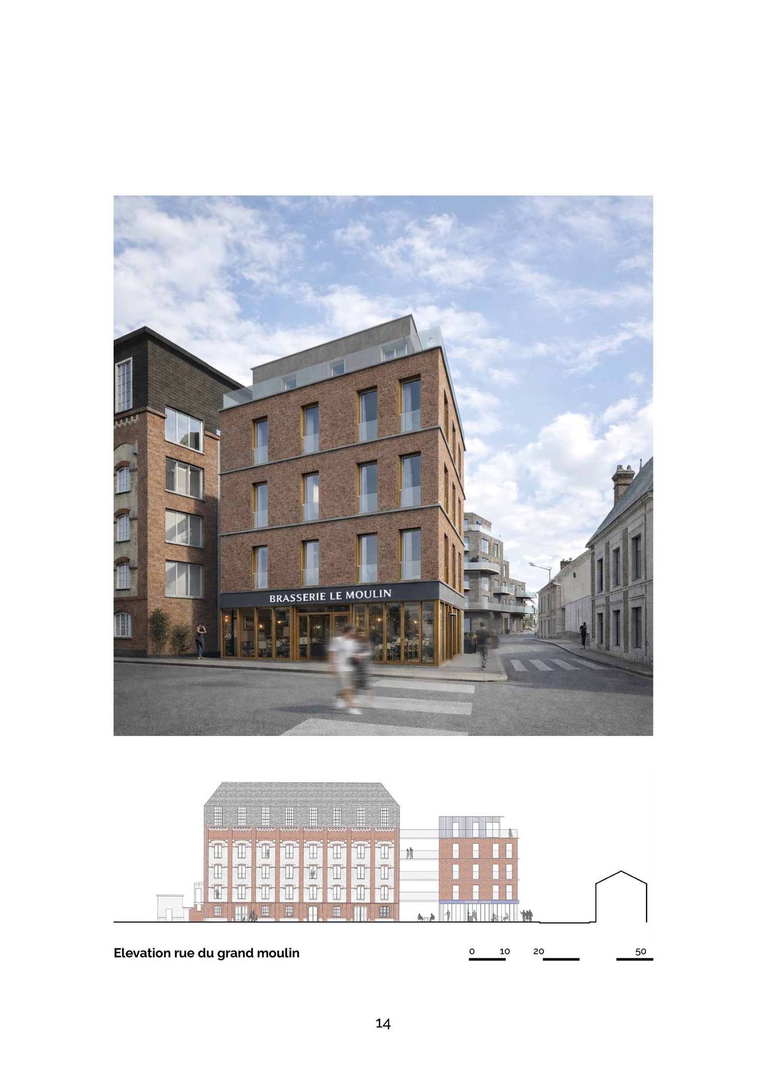 Surface : 9 900m² logements, 4 700m² commerces + halle, 3 800m² ERP,